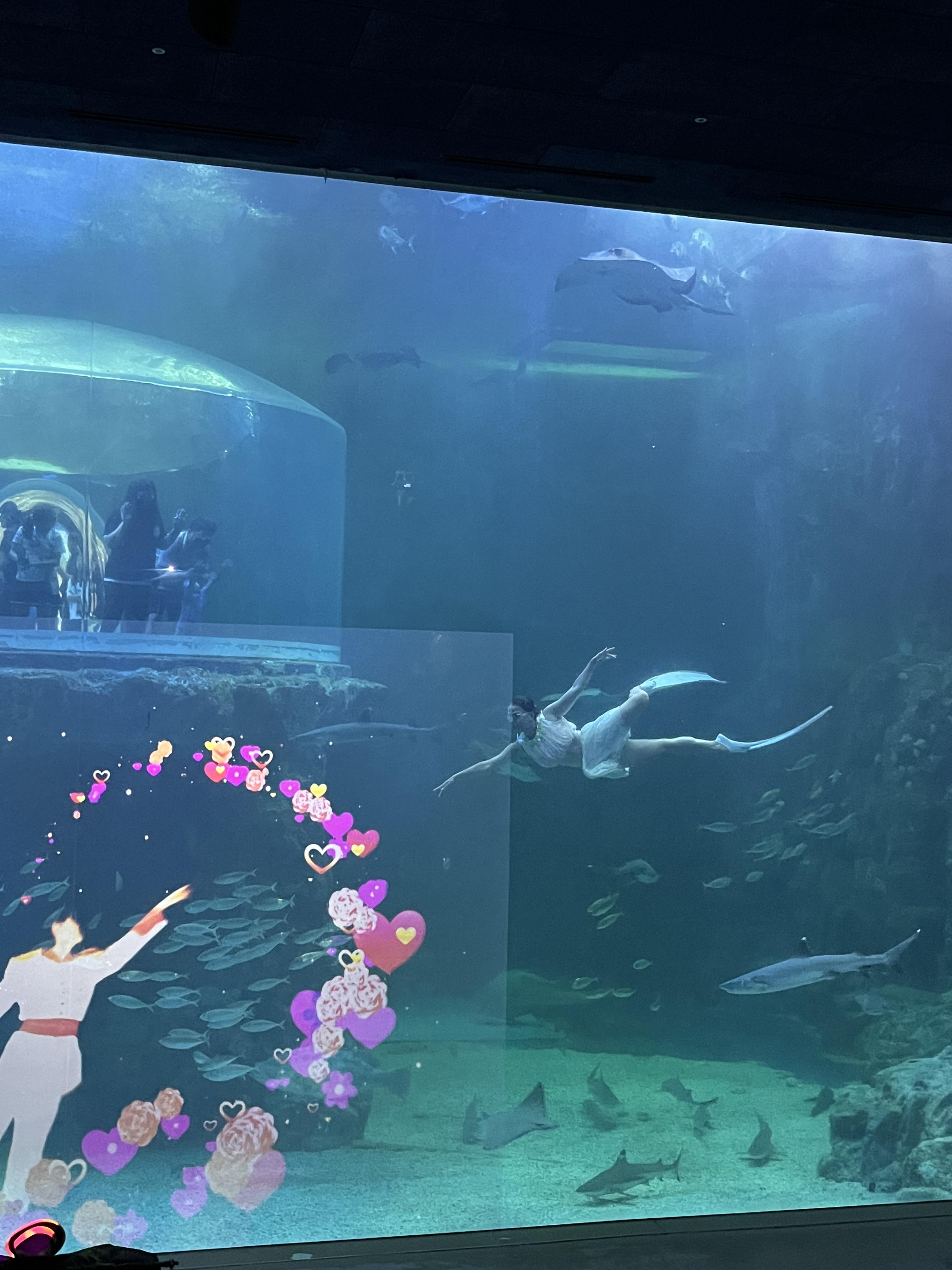 대형 수족관안에 인어공주가 들어가서 연기를 하는건데 아이들이 정말 좋아하더라고요. 엄청 깊은 수족관안에 들어가는데, 신기하고 대단했어요.