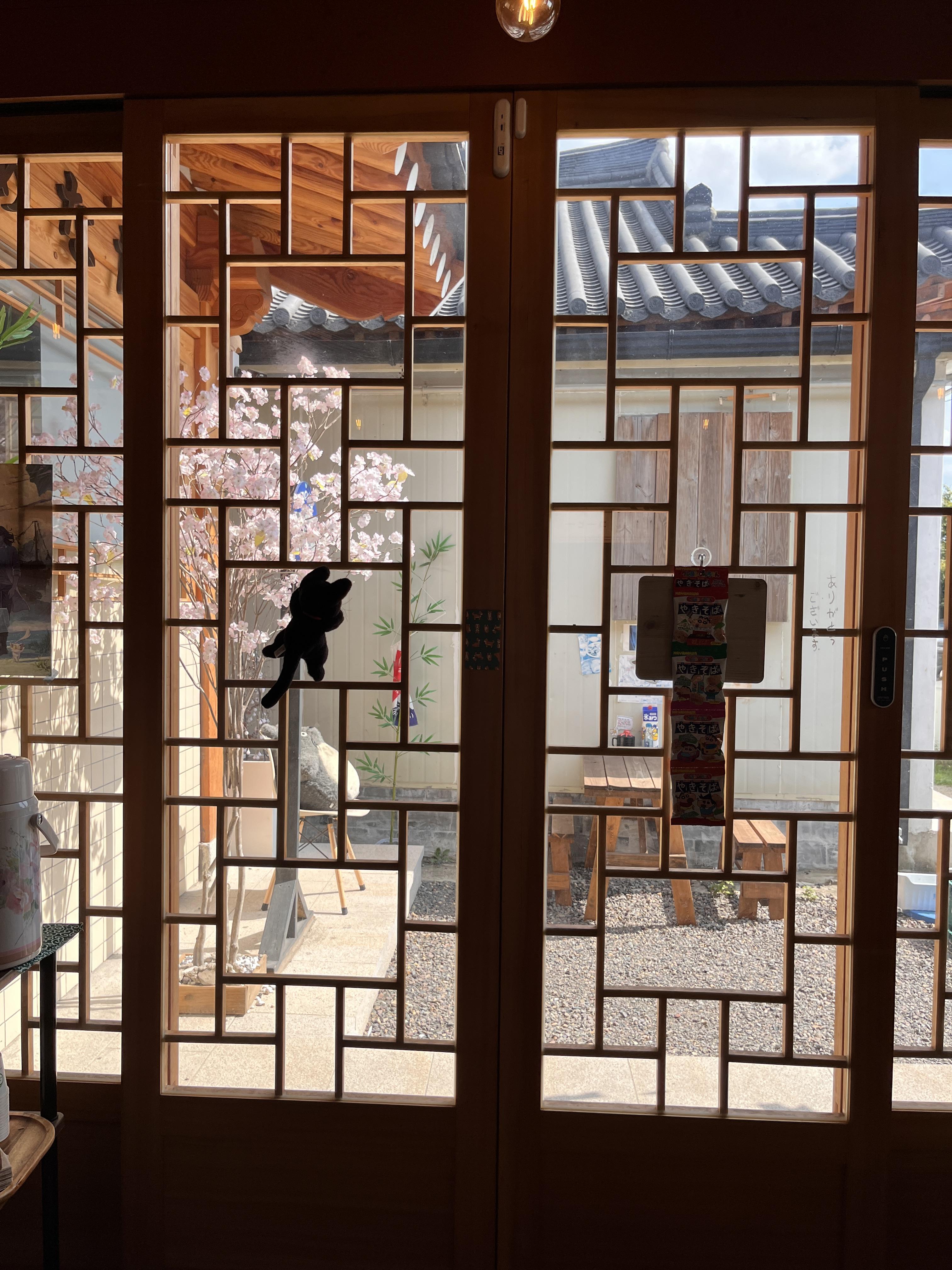 카페 외부는 일본 고택과 한옥을 콜라보한 느낌이었어요. 일본느낌을 최대한 많이 주려고 한 것 같아요.