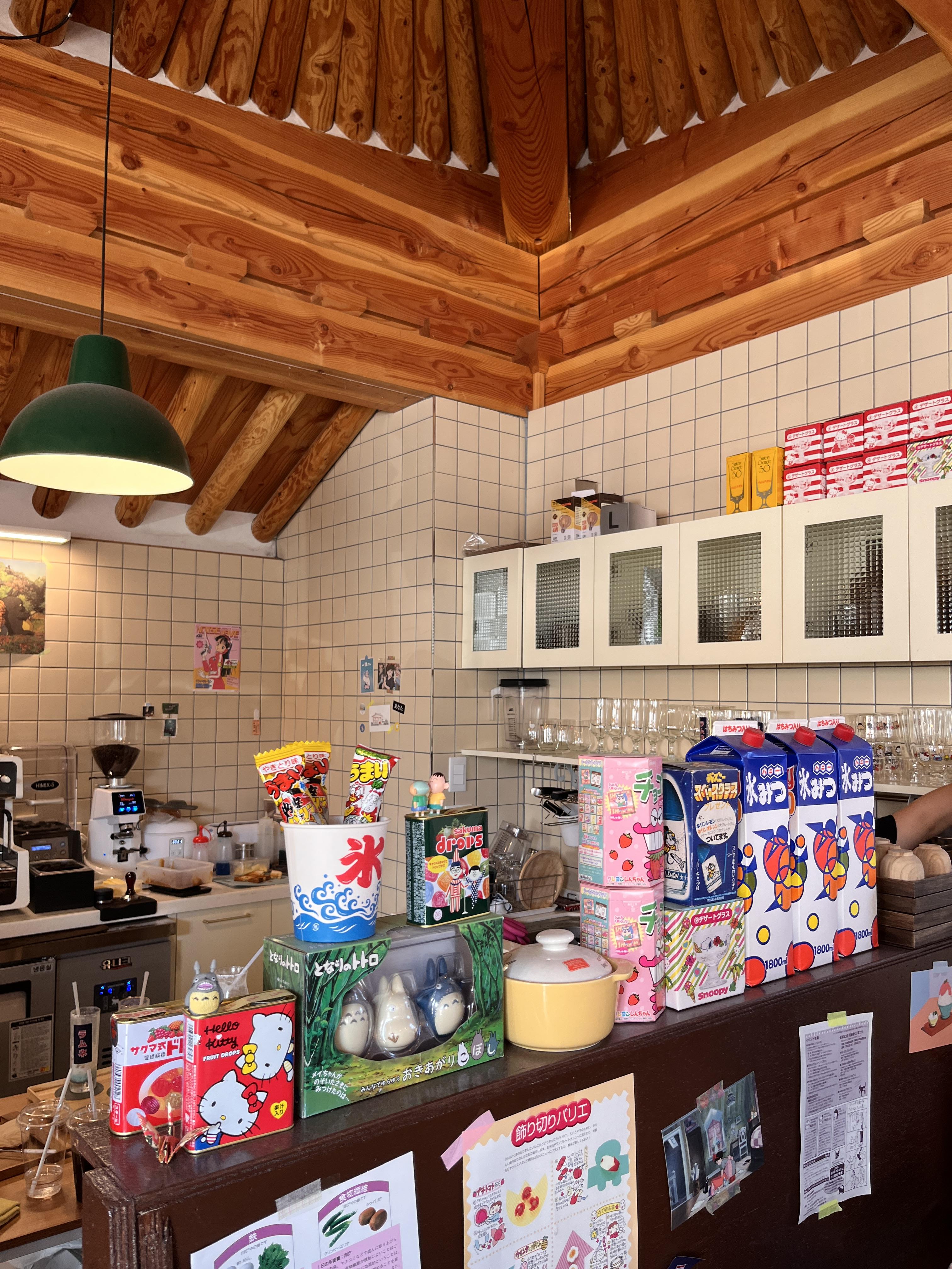 카페 곳곳에 캐릭터 인형들과 일본포스터들이 붙어있었어요. 일본감성 좋아하시는 분들이 많이 방문하시더라고요.